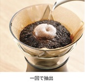 約40秒での一投抽出で簡単に美味しいコーヒーが淹れられます。安定した味わいが出せるので初心者にもオススメ。2杯用、3杯用の湯量が事前に量れるメモリ付き。基本の抽出レシピの他、アイスコーヒーやカフェオレ、節約レシピ付き。収納しやすいコンパクト設計。